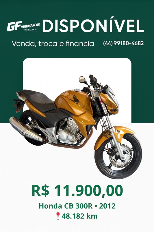 R$ 11.900,00 — Honda CB 300R • 2012